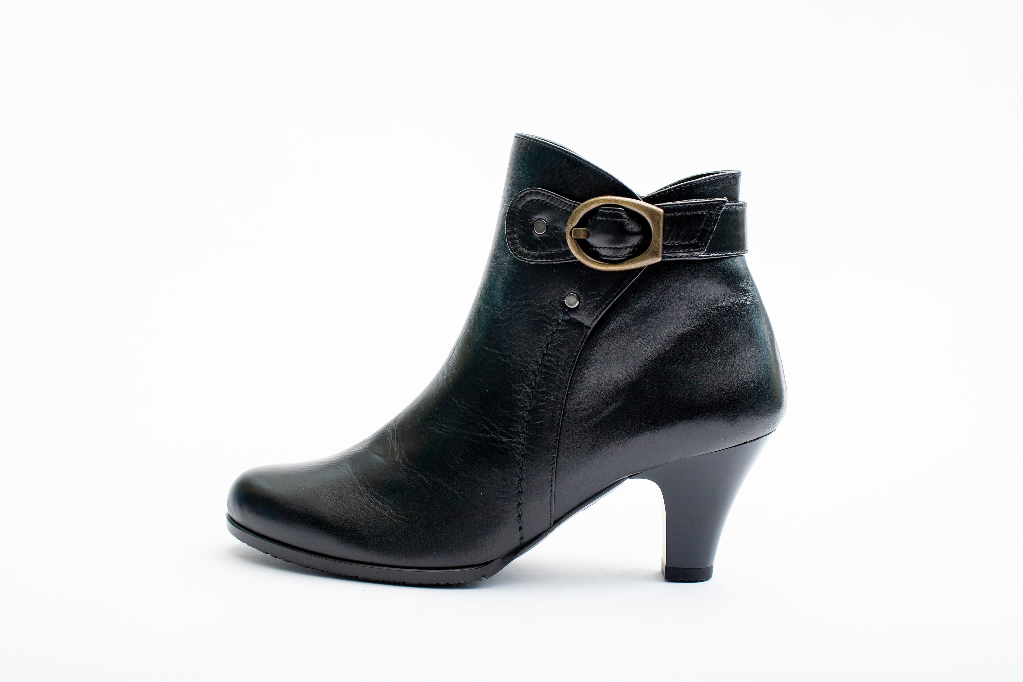 日本製。牛本革、内側ファスナー付き。 シンプルな黒ブーツ。 疲れにくいので、毎日でも旅行でも大活躍。 【ソールの厚さ】 前方1.5cm かかと部7cm ヒール感5.5cm