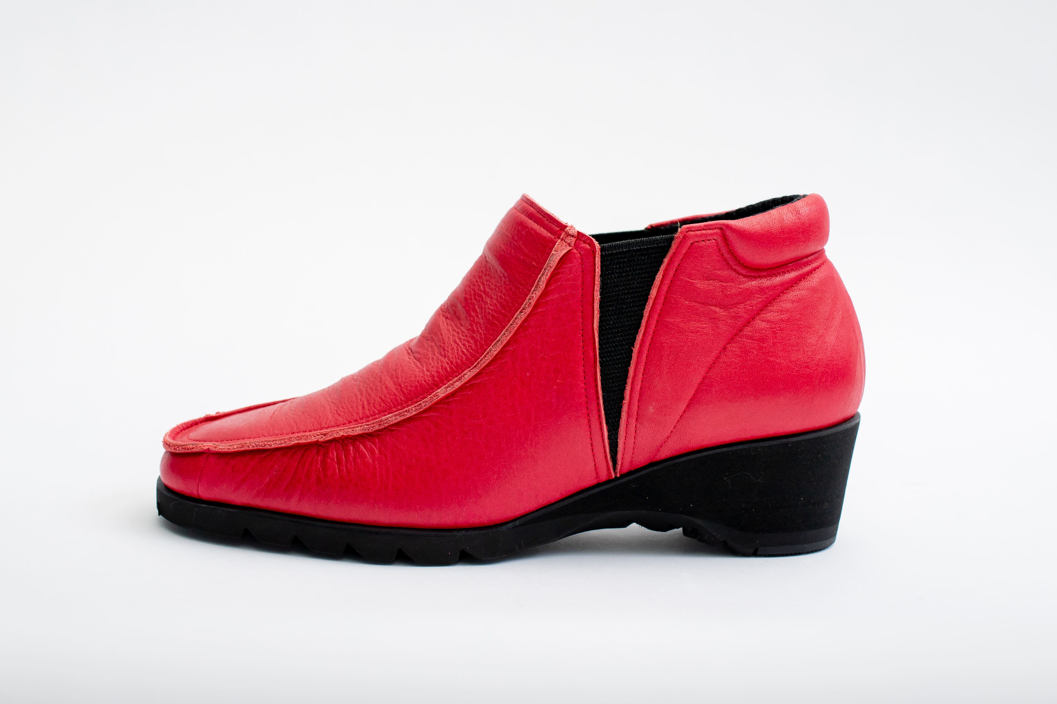日本製。柔らかい牛本革、丈夫なサイドゴアが内側・外側、両方に付いているので、脱ぎ履きが楽チン。